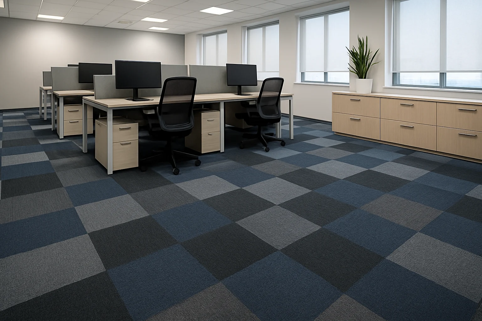 Carpet tiles and SPC flooring are most preferred for Dubai offices due to their durability, acoustic benefits, and easy maintenance.